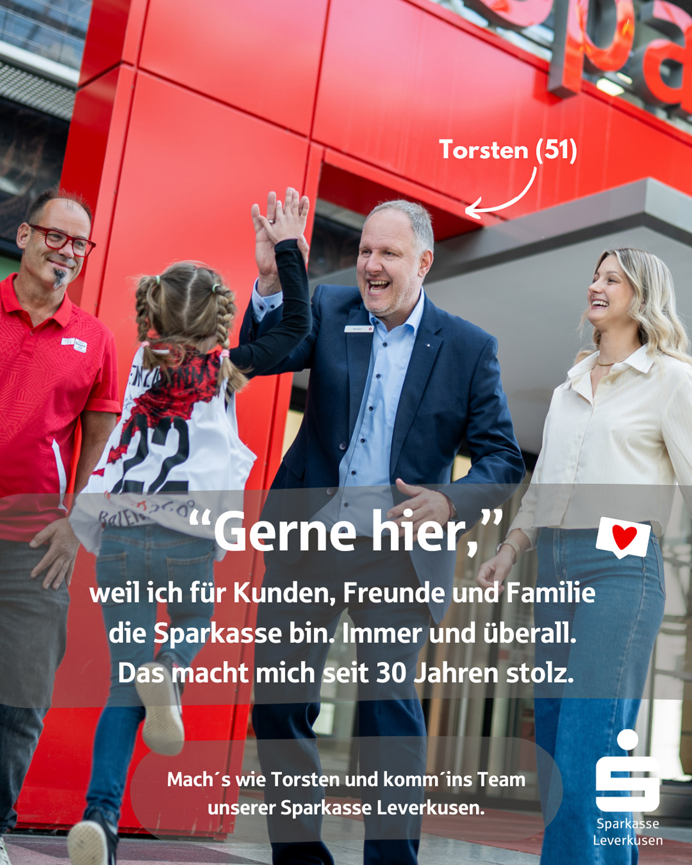 Deshalb sind wir besonders dankbar, dass wir für die Sparkasse Leverkusen Teil dieses starken Projekts sein durften – mit Bildern, die zeigen: „Gerne hier.“